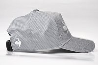 品の良い明るいグレー地に白色の刺繍が映え、高級感と若々しさがあふれるデザインです。サイドと後ろはメッシュ素材になっていて通気性はバツグンにいいです。