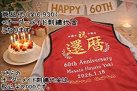 背中にオーダーメイド還暦刺繍が可能です。